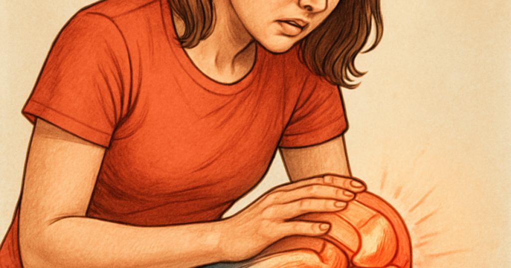 ある日、踊りの練習後に右膝に違和感を感じ、翌朝起きたら右膝が腫れていました。